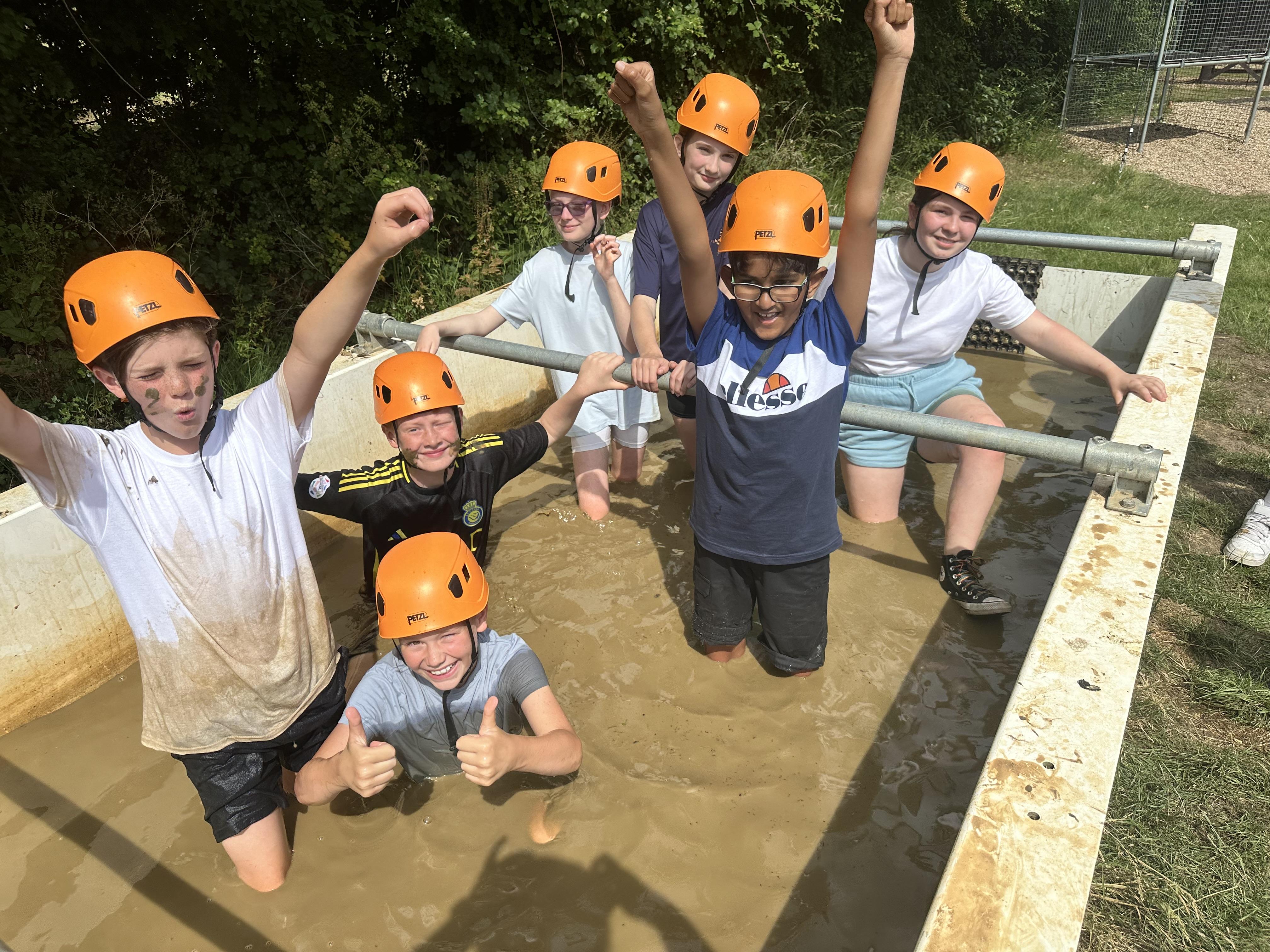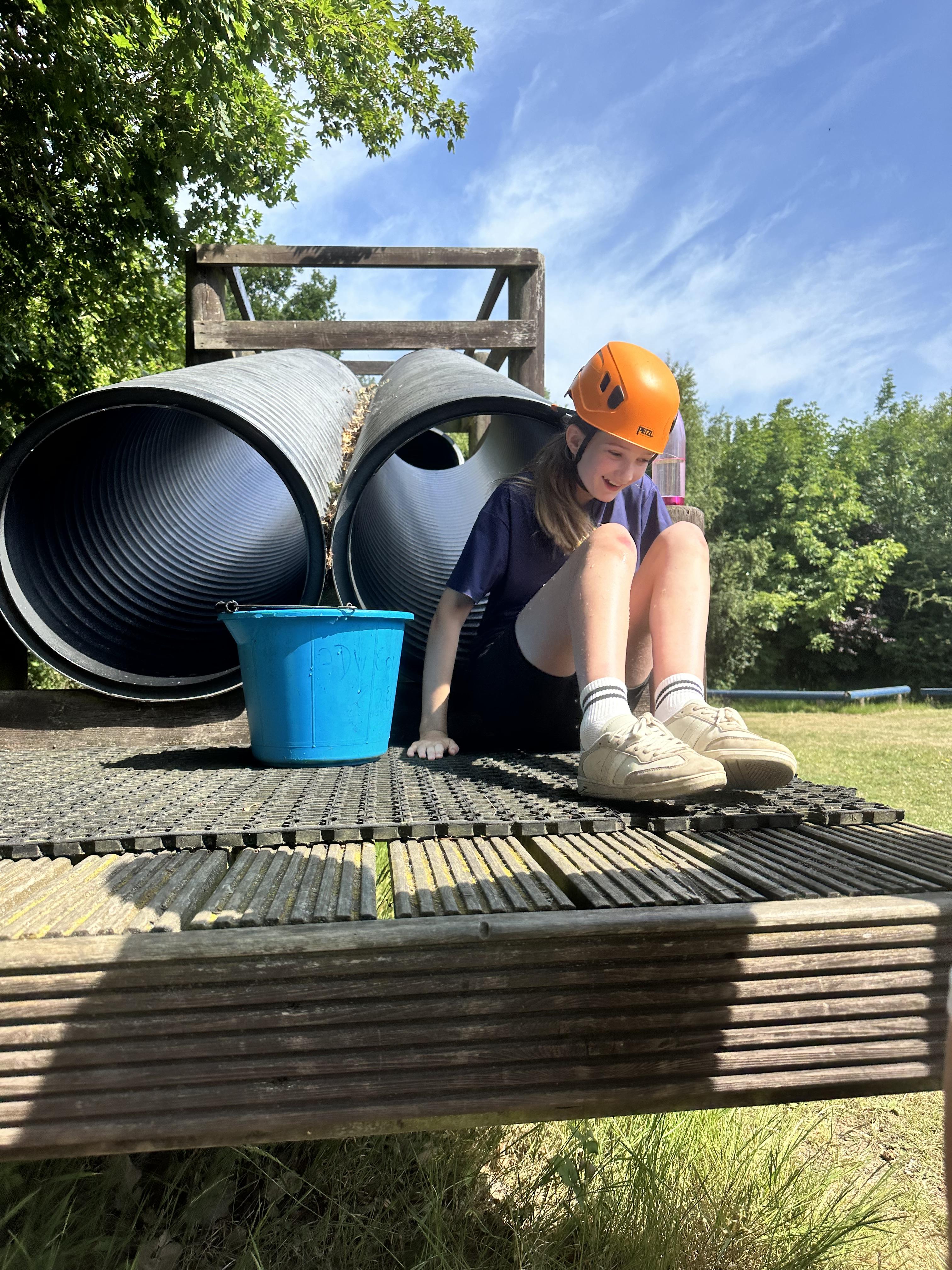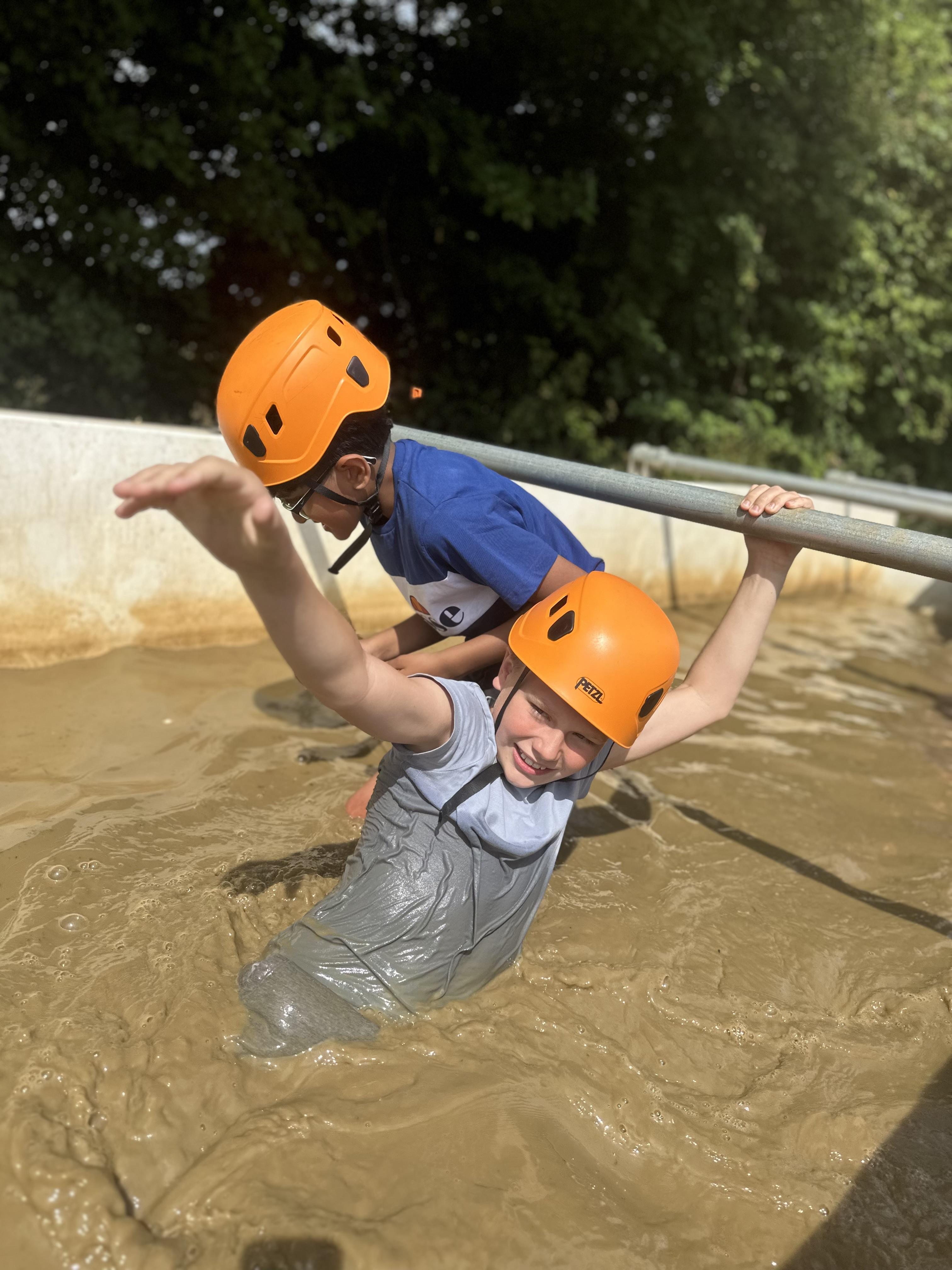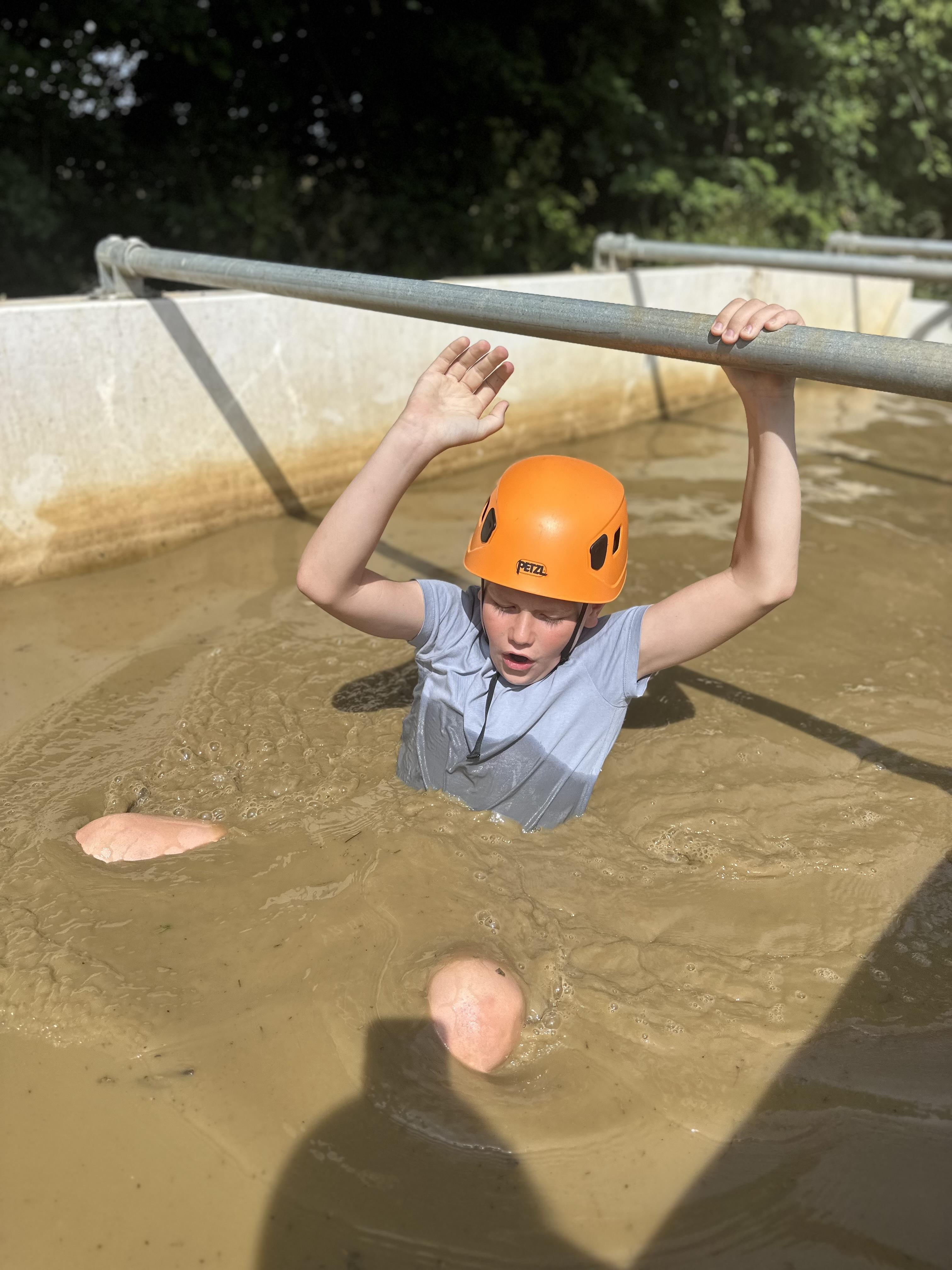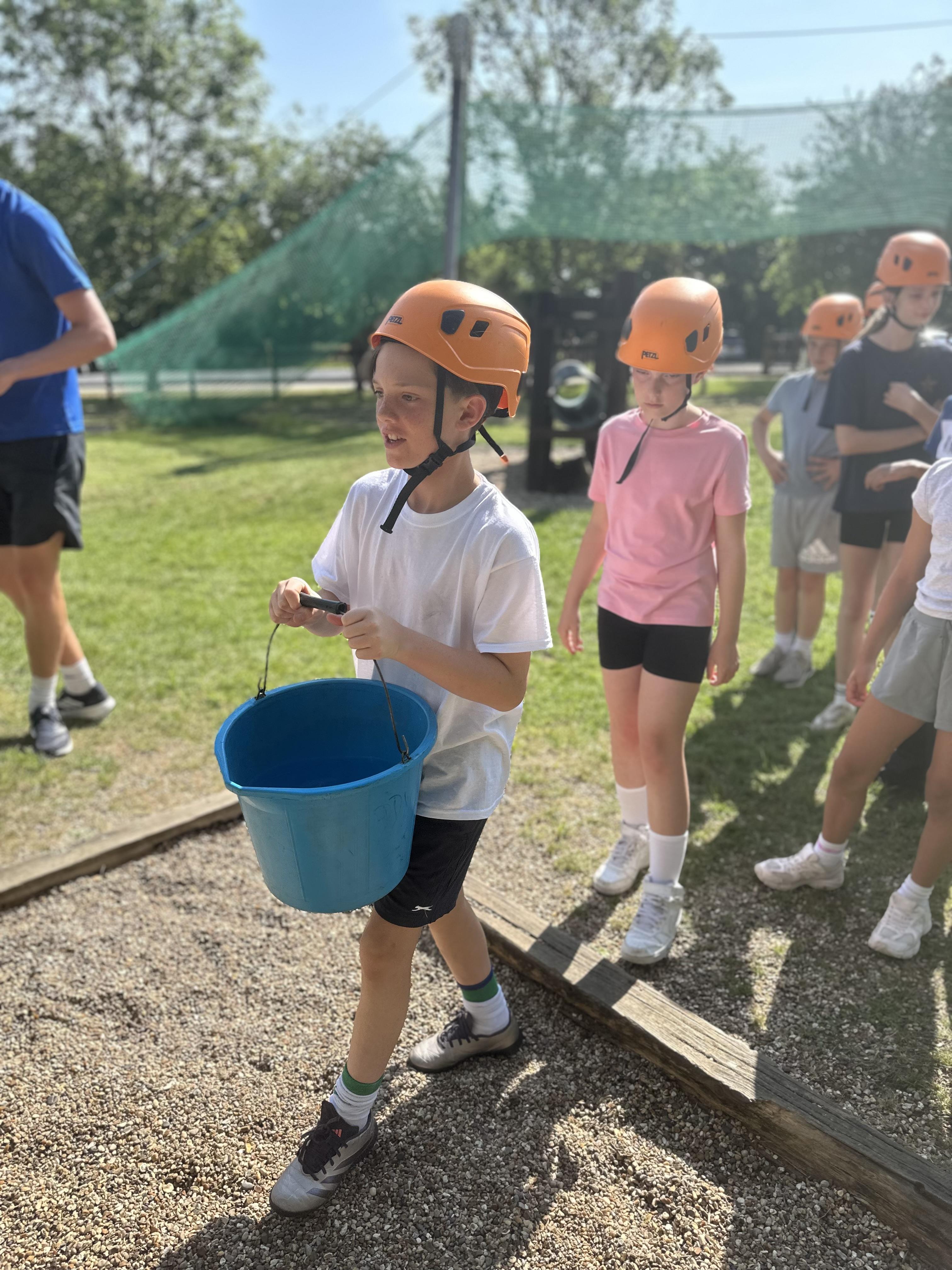 Another busy day and we’re not done yet! One more activity to do. We’ve already been shipwrecked; done a giant swing; shot some arrows; solved some challenges; took Dave the bucket around the obstacle course; got slightly wet and maybe some of us got rather muddy too!
