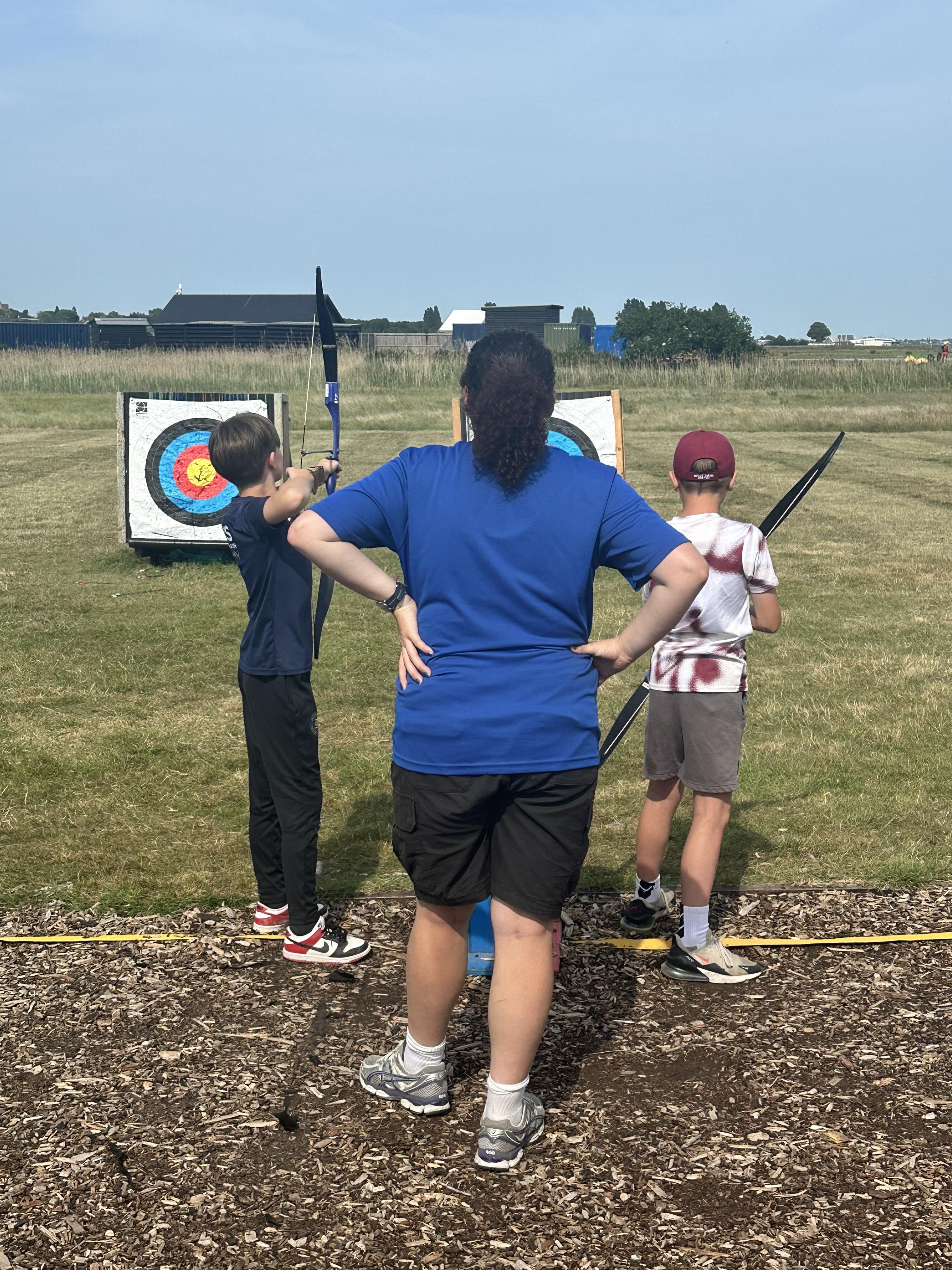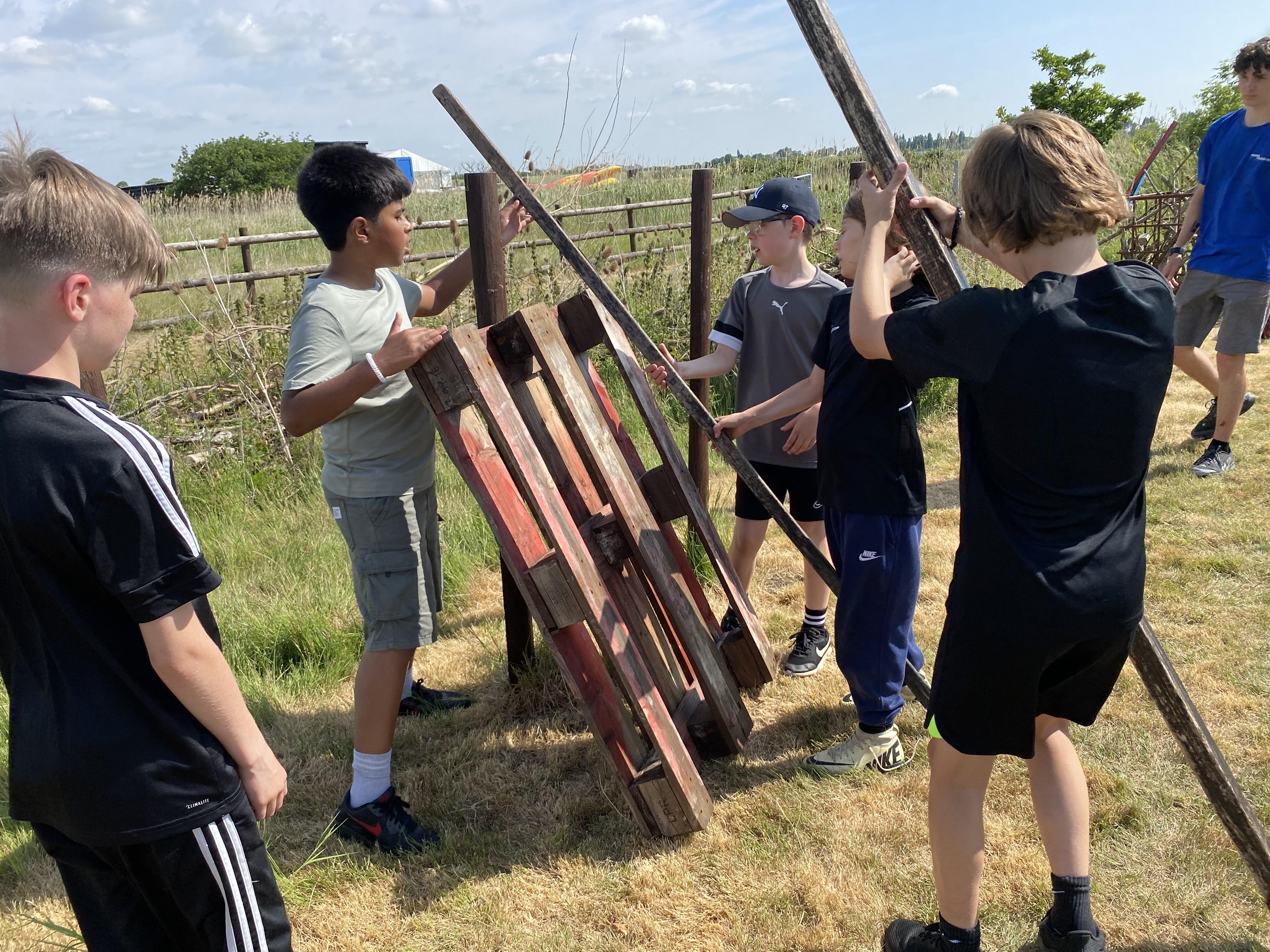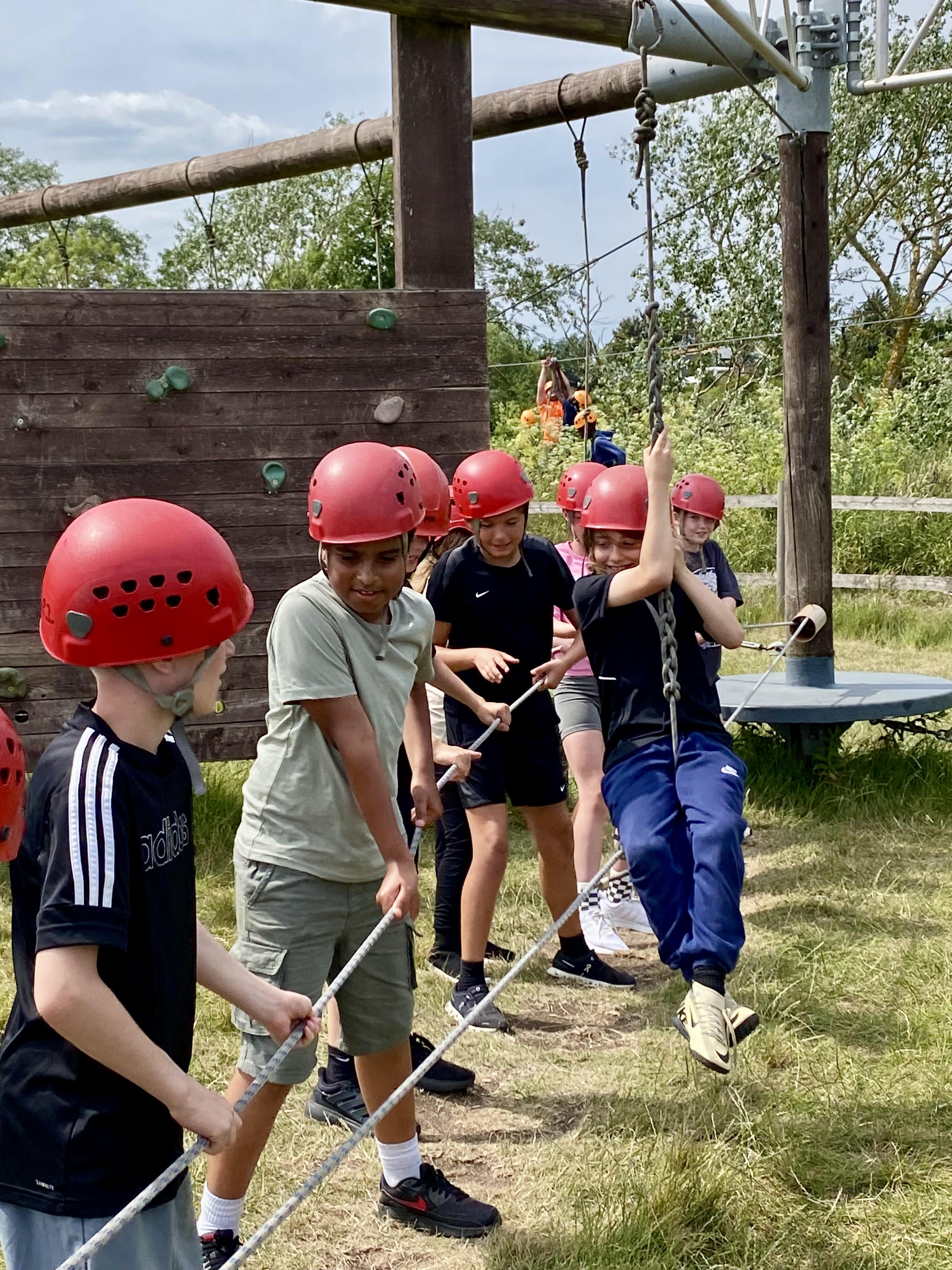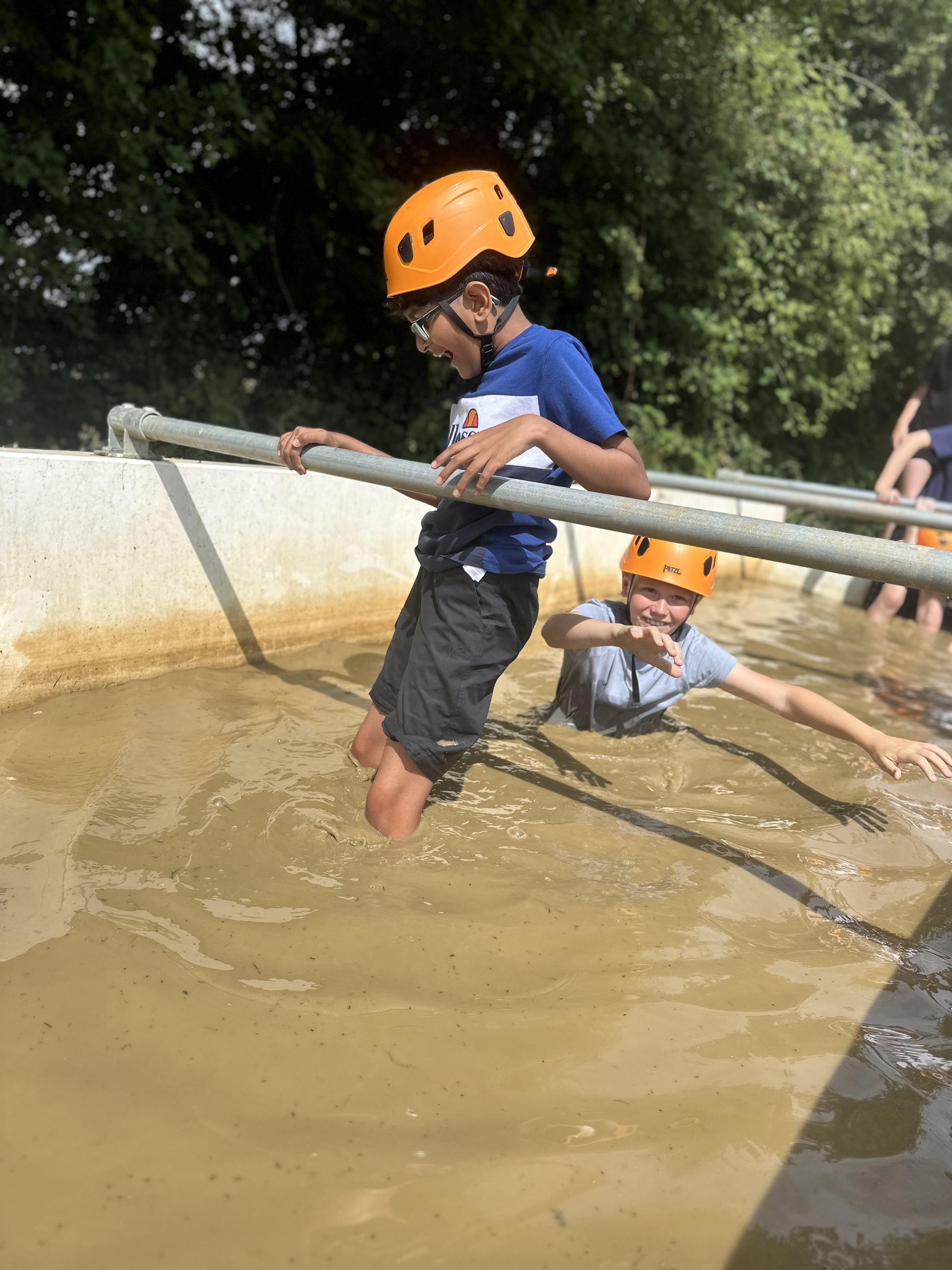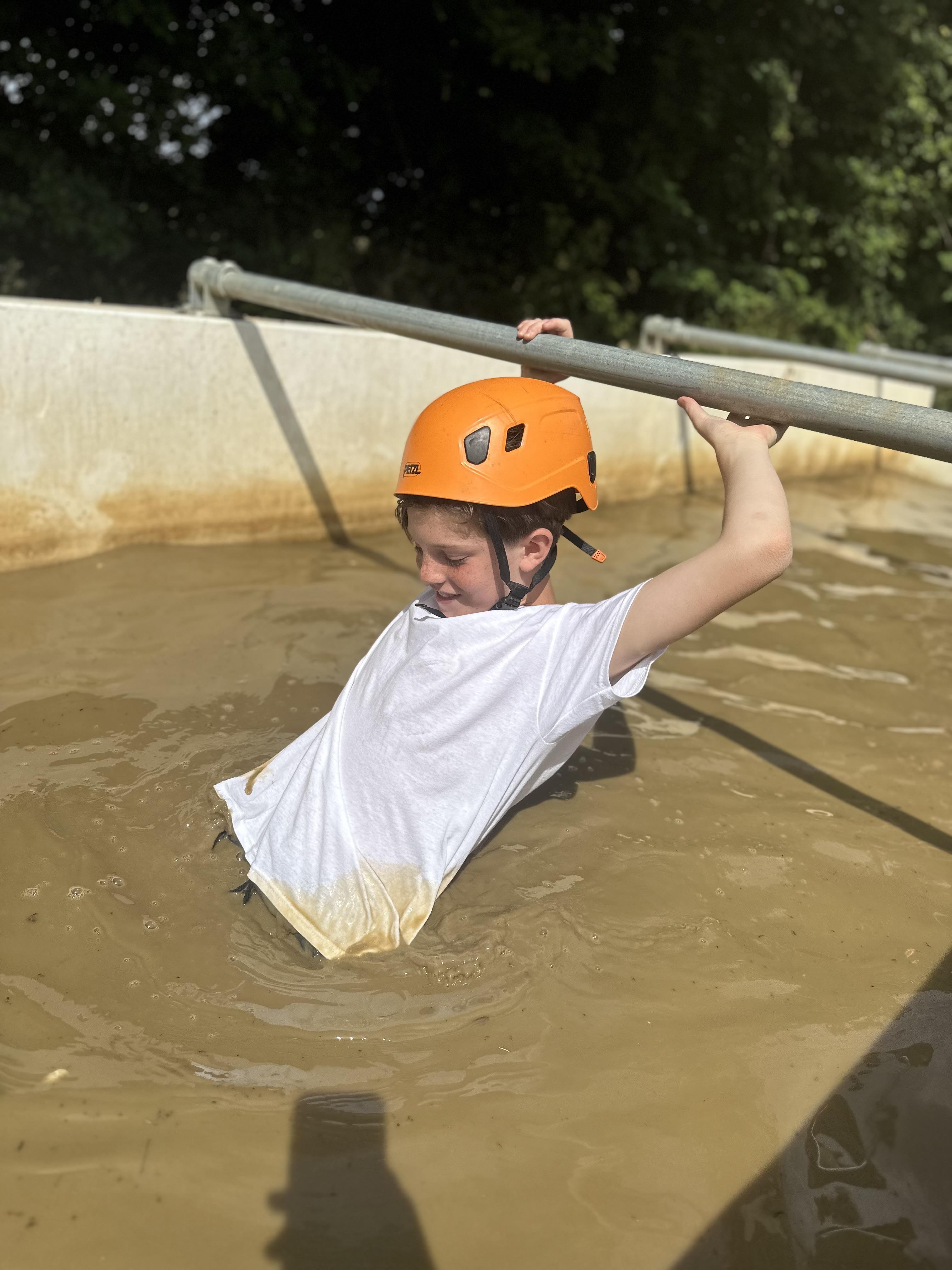 Another busy day and we’re not done yet! One more activity to do. We’ve already been shipwrecked; done a giant swing; shot some arrows; solved some challenges; took Dave the bucket around the obstacle course; got slightly wet and maybe some of us got rather muddy too!